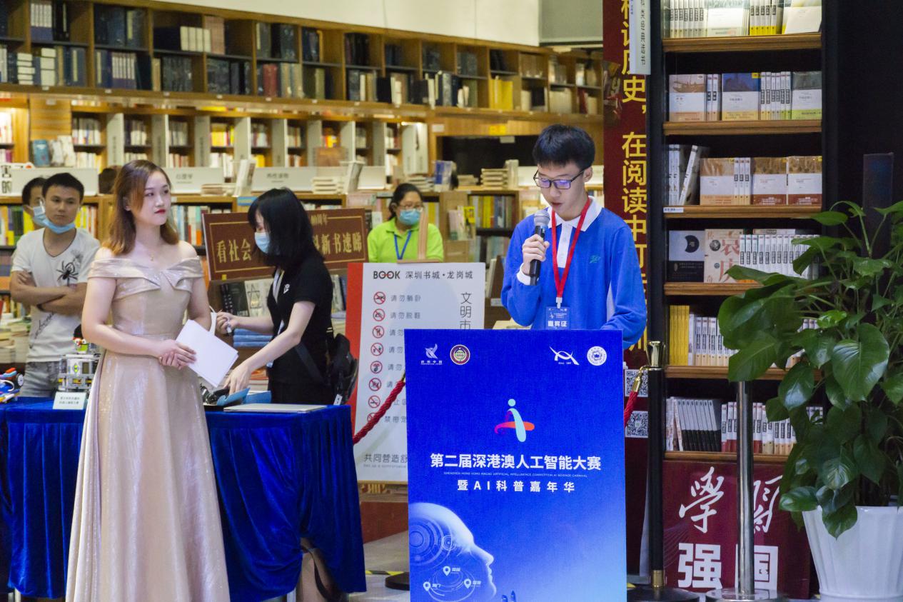 發(fā)布會現(xiàn)場,主辦方還特別邀請了首屆深港澳人工智能大賽冠軍選手——南科大附屬中學(xué)的張繼元同學(xué),作為優(yōu)秀參賽代表發(fā)表感言。在首屆大賽中,張同學(xué)獲得了有目共睹的成長,他表示:“感謝深港澳人工智能大賽暨AI科普嘉年華活動,給予了深港澳三地青少年同臺競技的平臺,讓三地青少年有了了解祖國發(fā)展歷程以及現(xiàn)在的輝煌成就的機會,這同時也增強了我們年輕一輩的民族自尊心,自己在機器人大賽所倡導(dǎo)的創(chuàng)新教育理念下,堅持不懈,努力奮斗,報效祖國,回報父母,服務(wù)社會”。