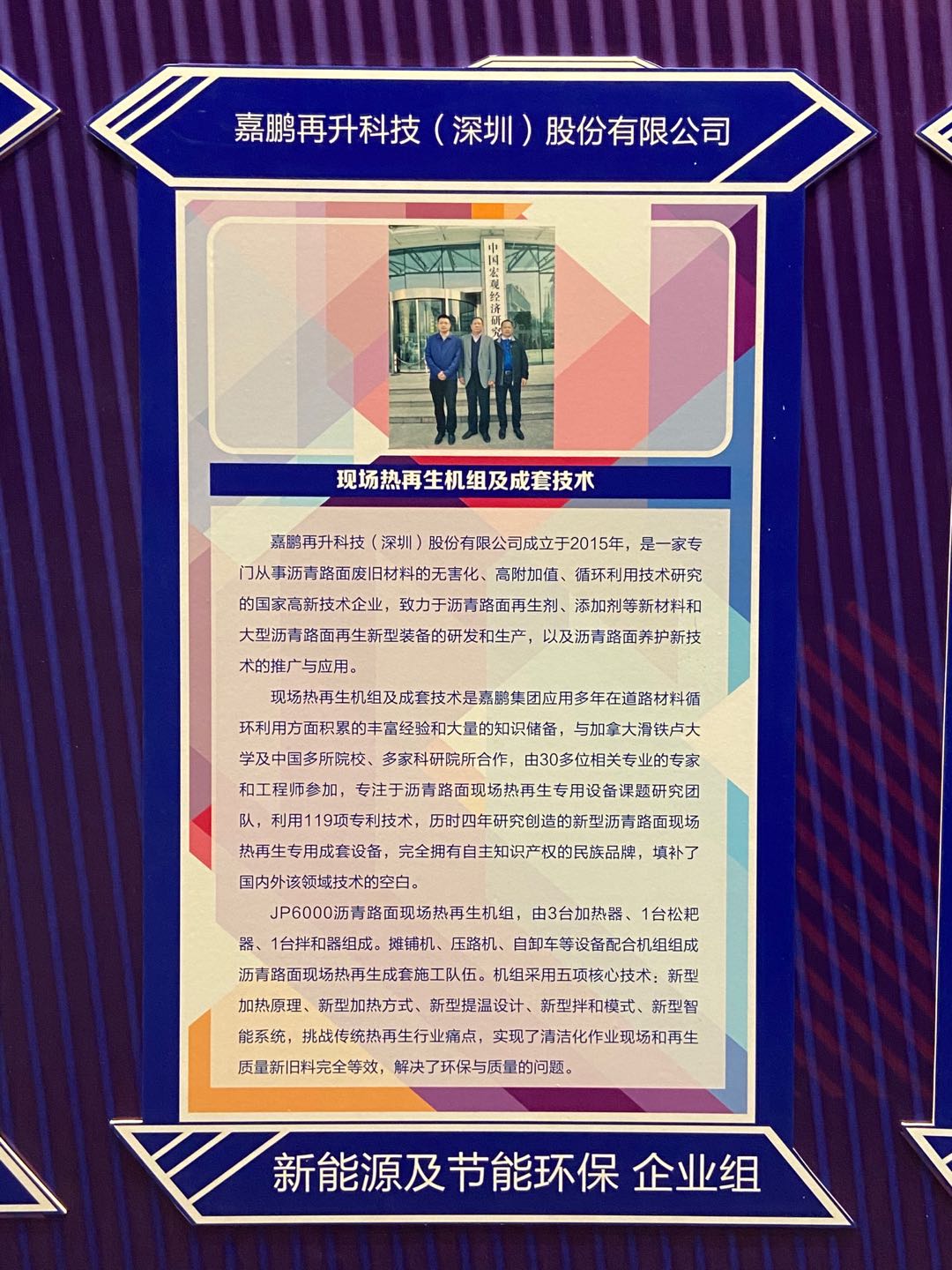 其中嘉鵬再升科技(深圳)股份有限公司“現(xiàn)場熱再生機(jī)組及成套技術(shù)”獲得新能源及節(jié)能環(huán)保行業(yè)一等獎(jiǎng),作為企業(yè)組代表接受采訪。