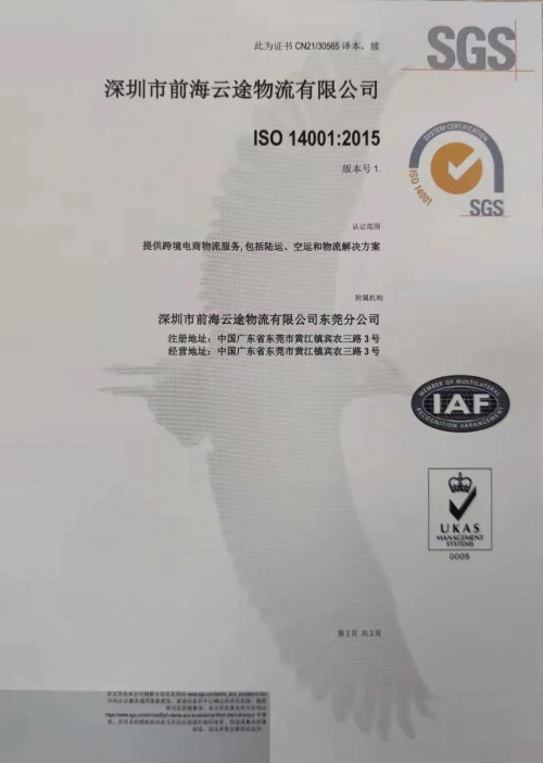 東方網(wǎng)2021年3月11日訊 繼2020年初獲得ISO9001質(zhì)量管理體系認證后,近日云途物流順利通過專家組評審,再次獲得由國際公認的檢驗、鑒定、測試和認證機構(gòu)SGS頒發(fā)的ISO14001環(huán)境管理體系、ISO45001職業(yè)健康與安全管理體系認證。