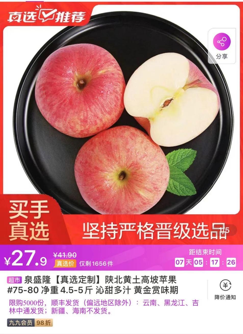 國美真選官買手為了搞清楚這個(gè)問題,到7個(gè)國內(nèi)蘋果主產(chǎn)區(qū),用測(cè)脆度和糖度的機(jī)器到產(chǎn)地挑選,那么數(shù)據(jù)顯示這個(gè)季節(jié)到底是哪個(gè)品種的蘋果最好呢?國美真選官通過測(cè)試50多款蘋果后發(fā)現(xiàn),在1月-3月,陜北黃土高坡的紅富士口味最佳。這是因?yàn)辄S土高坡上溫差大,蘋果的脆度、水分和糖度的數(shù)值都很好,一般的蘋果糖度達(dá)到12,但是它的糖度可以達(dá)到15或者16。
