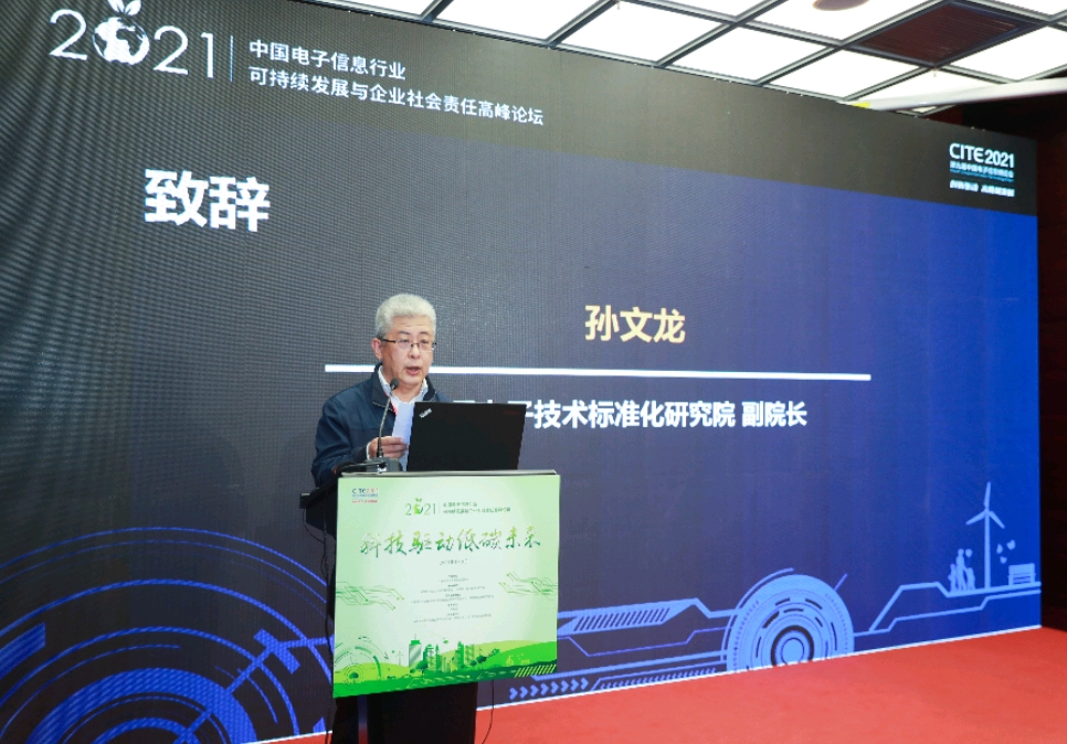 中國電子技術(shù)標(biāo)準(zhǔn)化研究院副院長孫文龍?jiān)谥罗o中表示,打贏“碳達(dá)峰、碳中和”這場硬仗,需要各行各業(yè)積極探索綠色低碳發(fā)展路徑,更需要各行業(yè)企業(yè)繼續(xù)秉承新發(fā)展理念,更加自覺的履行綠色減碳責(zé)任。電子信息產(chǎn)業(yè)作為我國國民經(jīng)濟(jì)戰(zhàn)略性、基礎(chǔ)性和先導(dǎo)性支柱產(chǎn)業(yè),是全球創(chuàng)新最活躍、帶動力最強(qiáng)、滲透性最廣的領(lǐng)域,不僅是綠色減碳的重要陣地,更是發(fā)揮自身強(qiáng)大科技創(chuàng)新優(yōu)勢,驅(qū)動國民經(jīng)濟(jì)綠色低碳發(fā)展,實(shí)現(xiàn)“碳達(dá)峰、碳中和”的中堅(jiān)力量。希望大家以高度的責(zé)任心和使命感,積極探索、加強(qiáng)合作、充分交流、暢所欲言,為綠色低碳化發(fā)展及其科學(xué)管理探道尋途,不斷把新時(shí)代電子信息行業(yè)社會責(zé)任治理水平和生態(tài)文明建設(shè)推向新的高度。