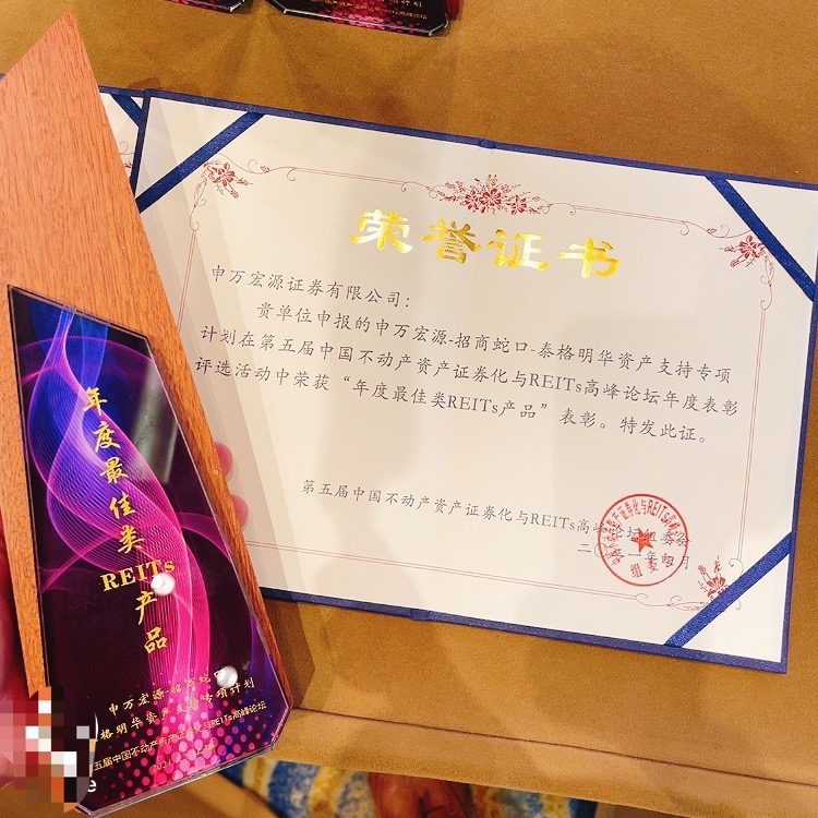 與招商蛇口申報(bào)基礎(chǔ)設(shè)施公募REITs同時(shí),由中國房地產(chǎn)業(yè)協(xié)會聯(lián)合中國REITs聯(lián)盟等主辦的“第五屆中國不動產(chǎn)資產(chǎn)證券化與REITs高峰論壇”上,憑借申萬宏源-招商蛇口-泰格明華資產(chǎn)支持專項(xiàng)計(jì)劃,招商蛇口獲評為“最佳原始權(quán)益人”,泰格明華項(xiàng)目獲得“年度最佳類REITs產(chǎn)品”獎項(xiàng)。