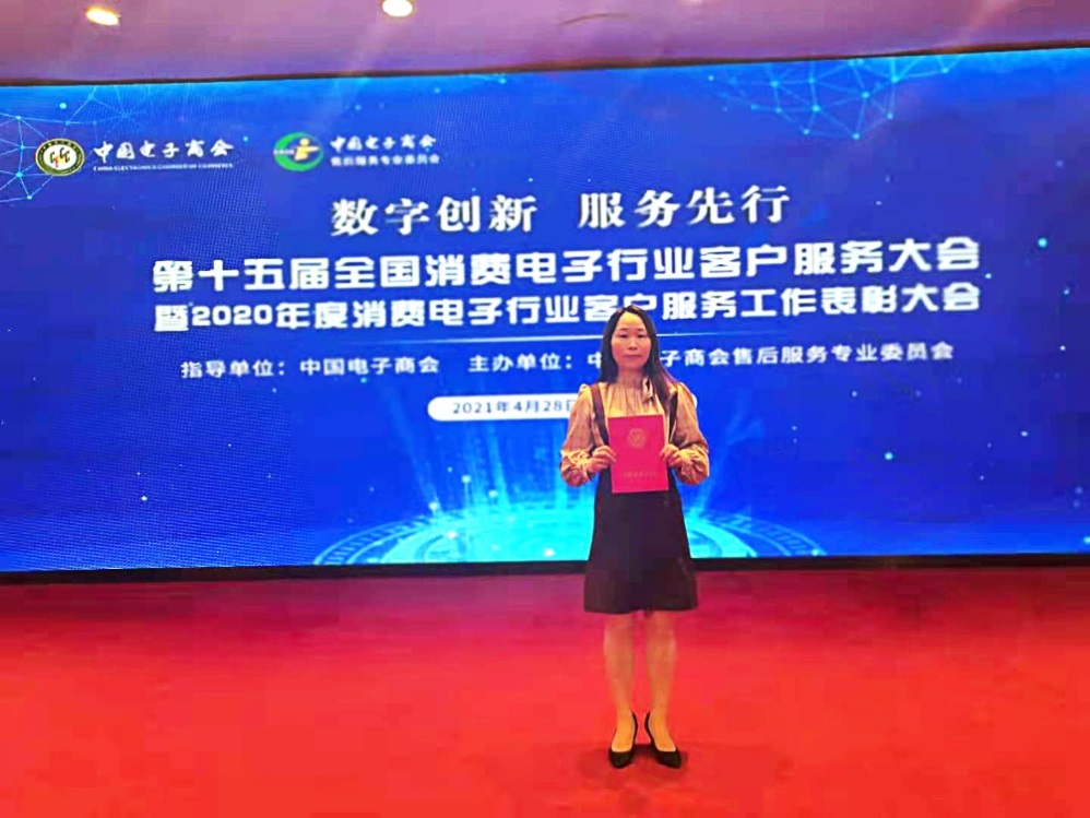 在經過網友、行業(yè)專家、主管部門等綜合評價后,國美管家獲評“2020年度消費電子行業(yè)客戶服務滿意單位”。國美管家上海恒遠客服經理錢云憑借近10年的專業(yè)服務和敬業(yè)精神,榮獲了“2020年度消費電子行業(yè)客戶服務優(yōu)秀工作者”。