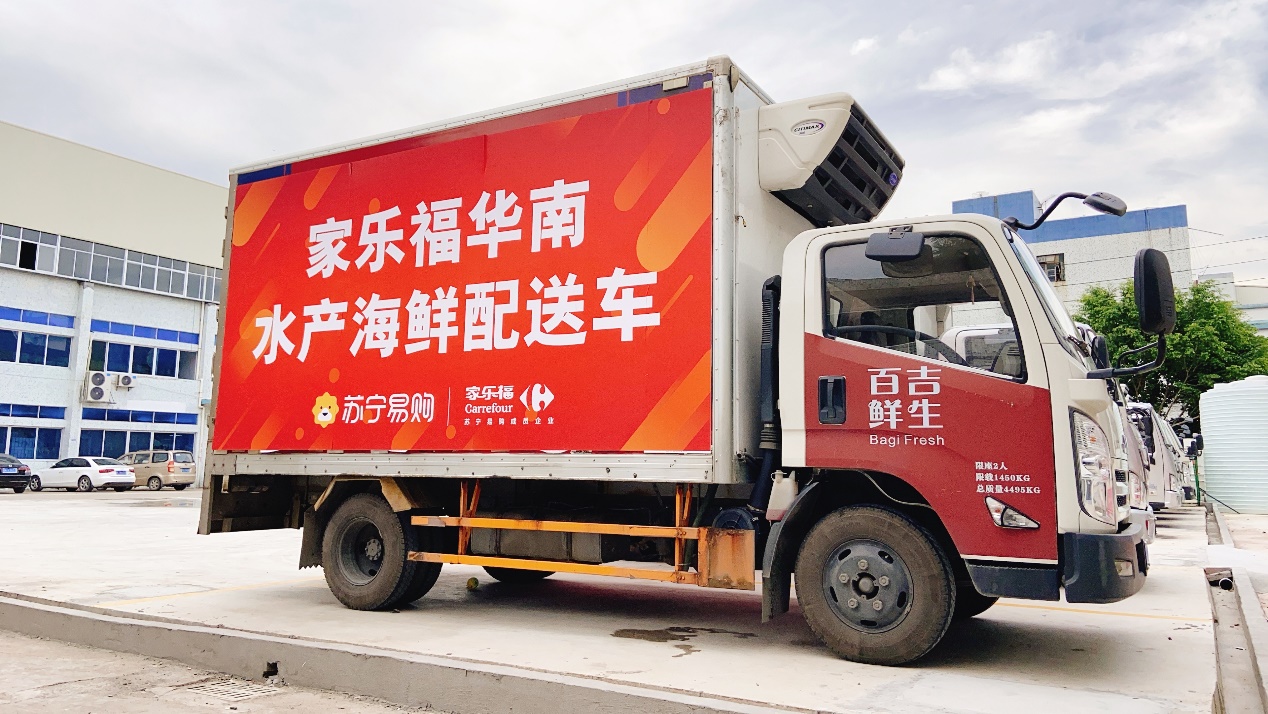 (圖:蘇寧家樂(lè)福水產(chǎn)海鮮配送車把鮮活海鮮從山河湖海送到百姓餐桌)