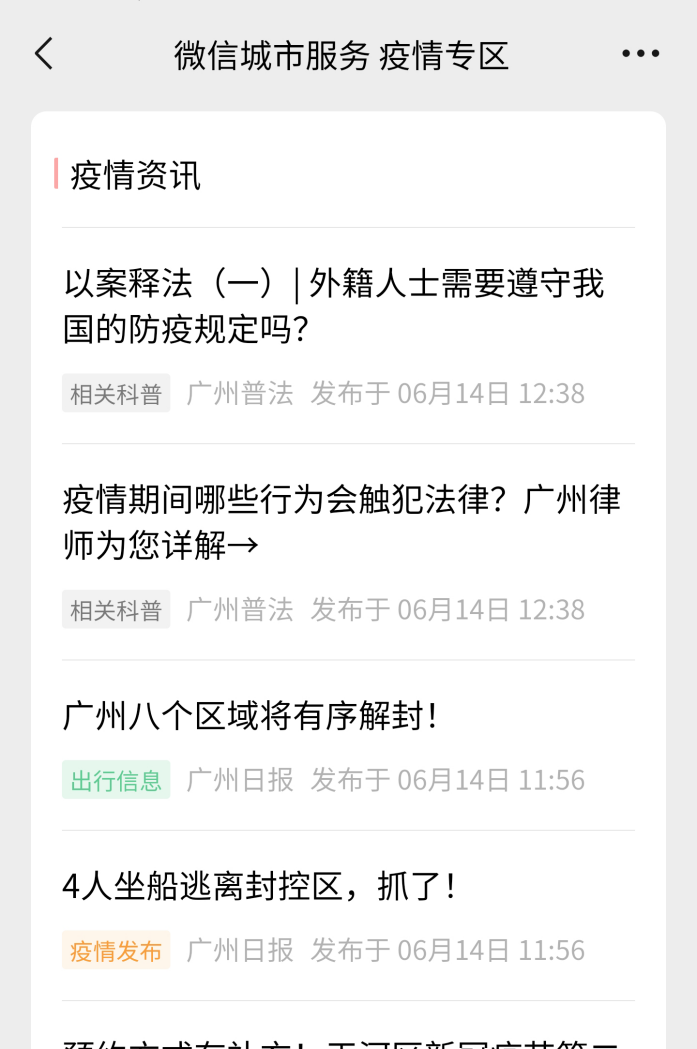 疫情資訊也加入新版專區(qū),專門為廣州市民提供官方權威的疫情資訊,方便群眾了解所在區(qū)域疫情最新動態(tài)及政策解讀信息。