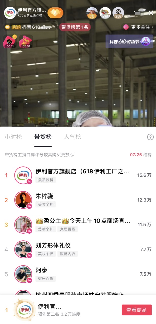 同時(shí),伊利洞察到消費(fèi)者對(duì)產(chǎn)品品質(zhì)的關(guān)注,和直播間消費(fèi)者一起深入伊利工廠,直接在好奶的源頭開啟溯源直播,極大地滿足了消費(fèi)者所見即所得的需求,同時(shí)也提升了直播的可看性,充分契合了興趣電商的內(nèi)核。這種新穎的直播模式最終創(chuàng)造了連續(xù)霸屏帶貨小時(shí)榜5小時(shí)的自播紀(jì)錄,在618當(dāng)天實(shí)現(xiàn)了抖音行業(yè)單日自播榜第一,單日銷售額破千萬的傲人成績(jī)。