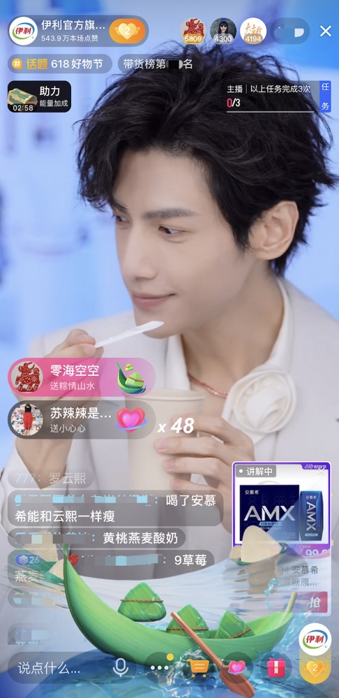 在新營(yíng)銷上,伊利旗下安慕希品牌憑借強(qiáng)大的品牌力,在618期間聯(lián)合平臺(tái)打造首個(gè)乳品品牌狂歡日。邀請(qǐng)品牌形象大使羅云熙空降伊利抖音直播間,與消費(fèi)者進(jìn)行互動(dòng)直播,內(nèi)容寵粉的同時(shí)高效轉(zhuǎn)化銷售。憑借寵粉互動(dòng)吸引抖音平臺(tái)年輕消費(fèi)者群體,狂歡日當(dāng)日直播間消費(fèi)者中,年輕人群比例高達(dá)70%。
