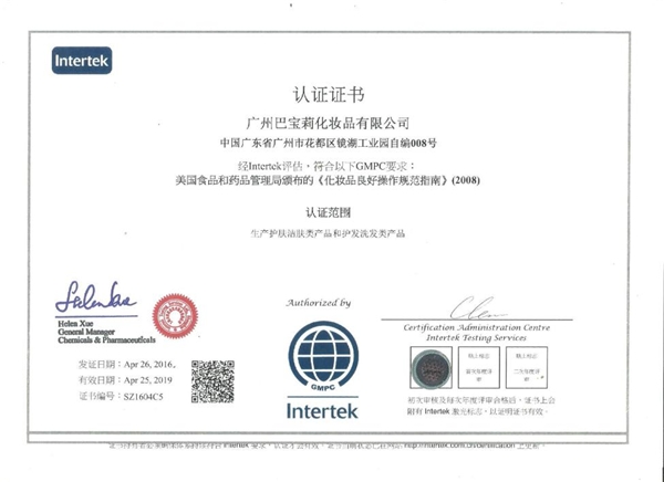 蔻斯汀于2012獲得GMPC(美國、歐盟、東盟)認證