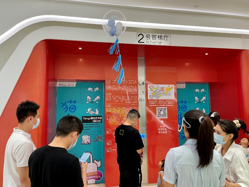 以壹方城為大型展廳,打造巨型貓瑜伽互動(dòng)點(diǎn)(B1中心廣場(chǎng))及巨型漫畫打卡墻 (小米通道前 ),全場(chǎng)還閃現(xiàn)各種創(chuàng)意貓貓漫畫貼紙,包括玻璃圍欄、店鋪櫥窗、電梯門,甚至是小小垃圾桶也有細(xì)節(jié)設(shè)計(jì),沉浸式的“吸貓”逛展體驗(yàn),讓人獲得滿滿療愈之感。不得不說(shuō),貓出沒 ·tango藝術(shù)特展實(shí)屬匠心之作,氛圍感和體驗(yàn)感極佳。