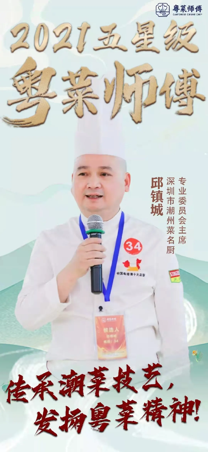 此次評選活動,來自深圳市潮州菜專業(yè)委員會的邱鎮(zhèn)城會長代表深圳餐飲界出戰(zhàn),最終獲得“五星級粵菜師傅名廚”榮譽稱號,是深圳潮州菜系唯一獲此殊榮的五星級名廚。邱鎮(zhèn)城學做潮汕菜30年,是深圳“精細潮州菜”的領軍人物,曾在米盧時代的國家足球隊擔任大廚,現任深圳市潮州菜名廚委員會主席,其烹飪技術屢獲好評,是中國粵港澳十大總廚,還是廣東十大南粵廚王、深圳市十佳行政總廚。邱鎮(zhèn)城在推廣、宣傳潮汕美食的同時,將潮汕文化推向首都、傳播全國,體現的是潮人愛拼敢贏、吃苦耐勞的精神。