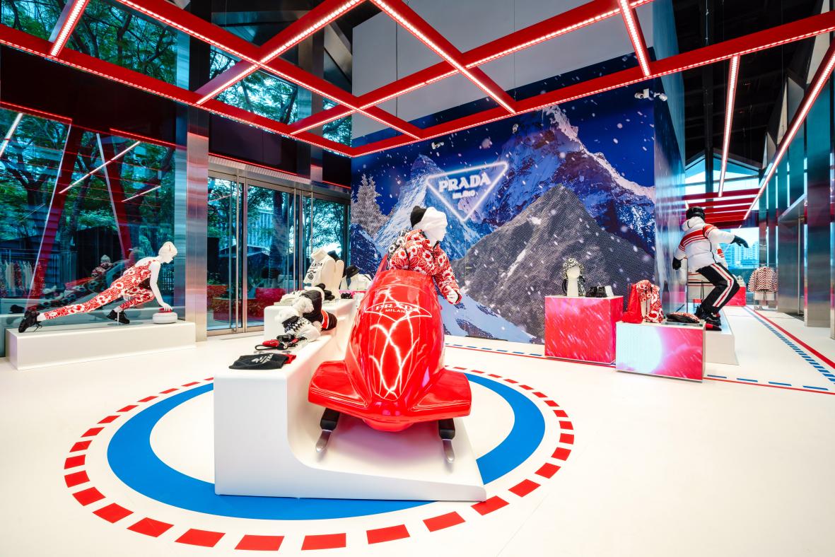 冬季運動是充滿活力和高水平競技精神的集中體現(xiàn)。經(jīng)過Prada標志性風(fēng)格的煥新演繹,冬季運動為“冰上普拉達”限時店提供了靈感來源:一個展示戶外運動熱情、充滿挑戰(zhàn)、崇尚團隊協(xié)作、體現(xiàn)高速魅力的個性原創(chuàng)空間。