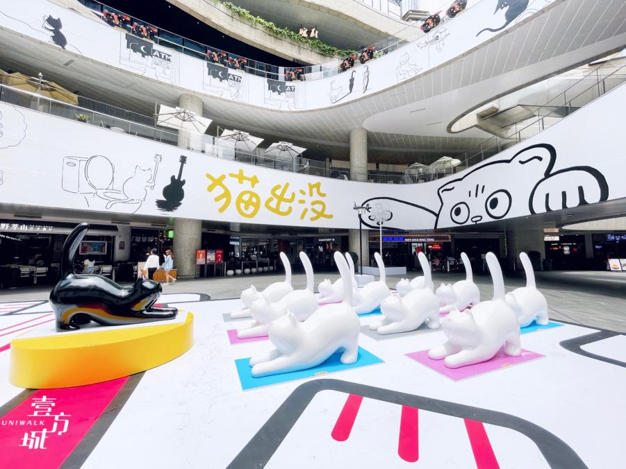 近期,在壹方城的角角落落都能看到隨處可見的喵星人。8月1日-9月12日,藝術(shù)家Tango攜手壹方城,共同推出“貓出沒”系列展覽。