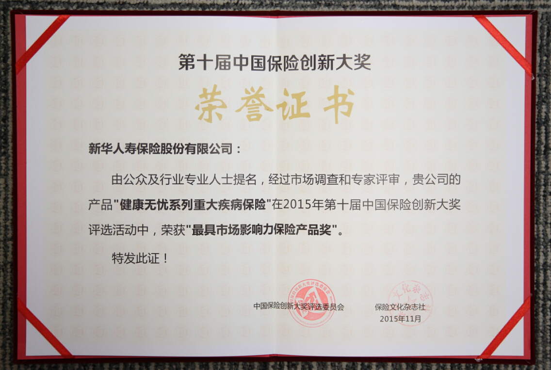 2015最具市場影響力保險(xiǎn)產(chǎn)品獎(jiǎng)