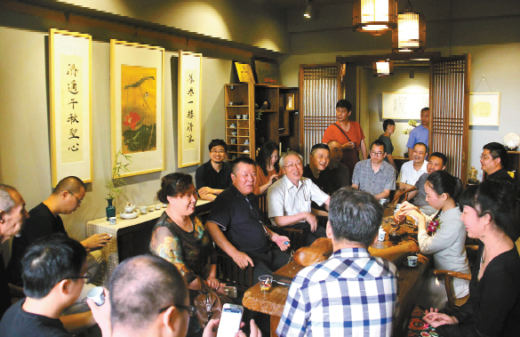 “現(xiàn)代人越來(lái)越注重生活美學(xué),這次的展覽很貼近生活,我親眼見證這個(gè)書畫展的準(zhǔn)備全過(guò)程,這些書畫家們既是內(nèi)容撰寫者,又是書畫創(chuàng)作者,還是設(shè)計(jì)師和裝潢師。他們親自裁剪懸掛,布置調(diào)整,茶和書畫文化結(jié)合起來(lái),剛好與善濟(jì)堂茶禪會(huì)館作為大眾服務(wù)的生活美學(xué)體驗(yàn)館的理念不謀而合?!鄙茲?jì)堂茶禪會(huì)館女主人成潔曼告訴記者。