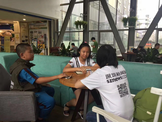 6月1日,在智慧親子陪伴組委會(huì)主辦的“六一聯(lián)歡會(huì)”上,來(lái)自書(shū)香小學(xué)的黃思怡和陽(yáng)光小學(xué)的張家宇兩名深網(wǎng)小記者對(duì)七巧國(guó)教育科技有限公司常務(wù)副總經(jīng)理 王耀強(qiáng)、深圳獅子會(huì)會(huì)長(zhǎng) 施建永進(jìn)行了專(zhuān)訪。(曹園芳)