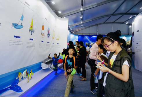 我找了一位正在觀看帆船知識,看起來比較面善的阿姨,鼓足勇氣走上去打了個招呼,并向她說明了我的來意,問是否可以打擾她一下,采訪她幾個問題,阿姨欣然答應(yīng)。