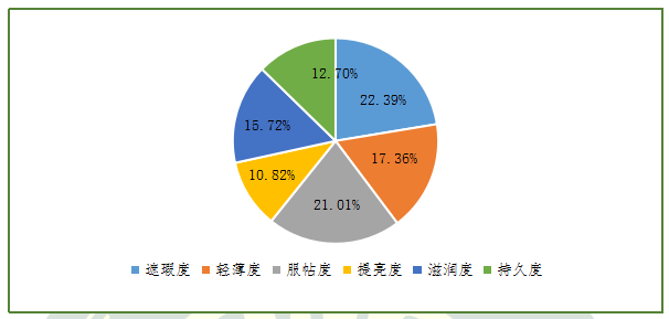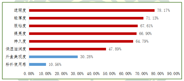 圖6.關(guān)注氣墊粉底使用性能指標(biāo)的消費者人數(shù)占比