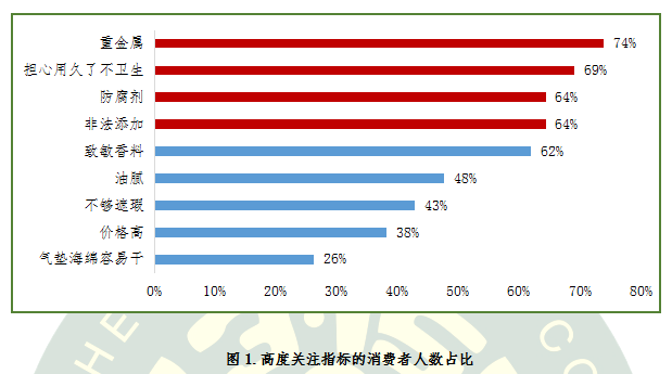 對于氣墊粉底這類兼具BB/CC霜和粉底功效的新型彩妝產(chǎn)品,消費者最擔(dān)心的問題是什么呢?項目調(diào)查數(shù)據(jù)顯示,關(guān)注氣墊粉底“重金屬”問題的消費者占比高達74%,“擔(dān)心氣墊粉底用久了不衛(wèi)生”的消費者占比為69%,還有64%的消費者關(guān)注“防腐劑”和“非法添加劑”問題。