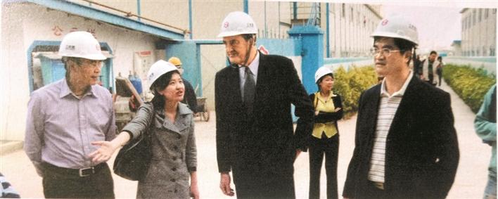 柯剛明(右一)陪同國際大體聯(lián)官員考察大運(yùn)村建設(shè)。圖片由受訪者提供