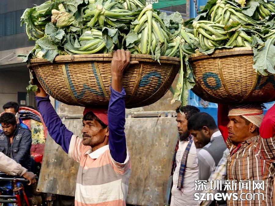 深圳新聞網(wǎng)2019年1月8日訊 在孟加拉,無論城市,還是鄉(xiāng)下,人們頭頂重物的情景,確實是無處不在的。李仁奇攝