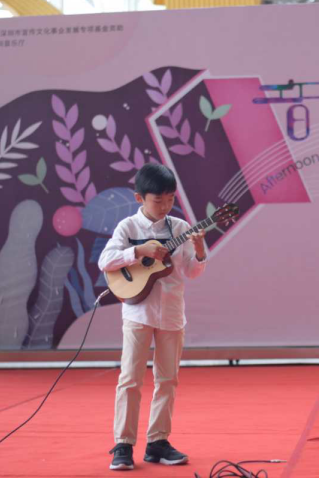 深圳10歲的小朋友陳厚坤首先帶來(lái)一曲《While my guitar gentlely weeps》,這首曲目是世界最負(fù)盛名的演奏家Jake Shimabukuro的成名作,難度可想而知,陳厚坤小朋友穩(wěn)定嫻熟的演奏,為音樂(lè)會(huì)拉開(kāi)了序幕。