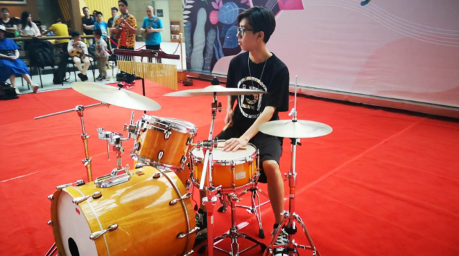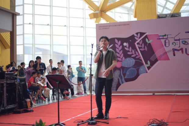 畢業(yè)于深圳大學(xué)金鐘音樂(lè)學(xué)院的主唱周鈺城帶來(lái)兩首尤克里里樂(lè)隊(duì)歌曲, Jason Mraz 的經(jīng)典曲目《 I’ m Yours 》和英國(guó)當(dāng)紅歌星 E d sheeran 的 《 Thinking out Loud 》,周鈺城富有磁性的嗓音,在深圳夏威夷小吉他協(xié)會(huì)理事謝佳宜的尤克里里琴聲以及同樣畢業(yè)于深圳大學(xué)金鐘音樂(lè)學(xué)院的鼓手黃曉輝的鼓聲伴奏中,美妙的融合在一起。