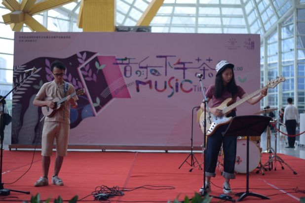 Traffic Light是一支玩轉(zhuǎn)多種音樂(lè)風(fēng)格的尤克里里樂(lè)隊(duì),樂(lè)隊(duì)曾在深圳灣國(guó)際藝穗節(jié)、廣東口琴嘉年華、深港同心耀中華尤克里里專場(chǎng)音樂(lè)會(huì)及深圳市夏威夷小吉他協(xié)會(huì)舉辦的尤克里里音樂(lè)節(jié)、尤克里里嘉年華等活動(dòng)中作為尤克里里專場(chǎng)表演嘉賓。本次樂(lè)隊(duì)帶來(lái)了林俊杰的流行曲目《當(dāng)你》以及《如果有來(lái)生》,樂(lè)隊(duì)將歌曲改編為尤克里里樂(lè)隊(duì)版本,尤克里里的歡快琴聲和主唱靜靜的甜美歌聲回蕩在金樹(shù)大廳,帶來(lái)了一抹一陣夏日小清新。