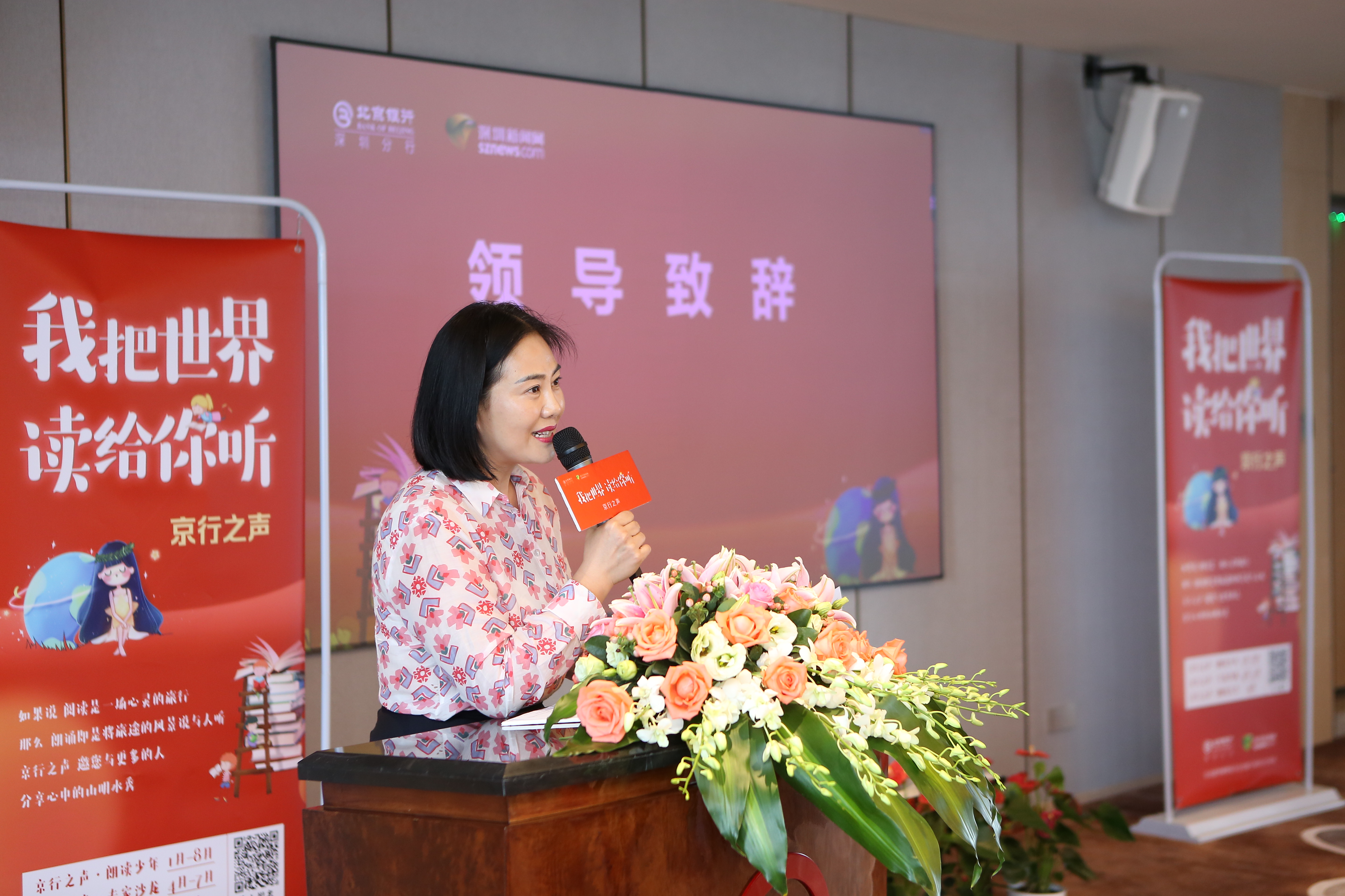 深圳市語言文字工作委員會(huì)辦公室主任馬慶為活動(dòng)致辭,他說,特別感謝北京銀行深圳分行一直以來不遺余力地為提升兒童朗誦水平所作出的重要貢獻(xiàn)。在談及如何為孩子選擇朗誦素材這一話題時(shí),馬慶強(qiáng)調(diào),對(duì)于低齡孩子來說,應(yīng)盡量選擇便于低齡孩子掌握的故事內(nèi)容與人物形象,這樣才能讓孩子們?cè)诶斫獾幕A(chǔ)上帶著感情進(jìn)行朗誦。