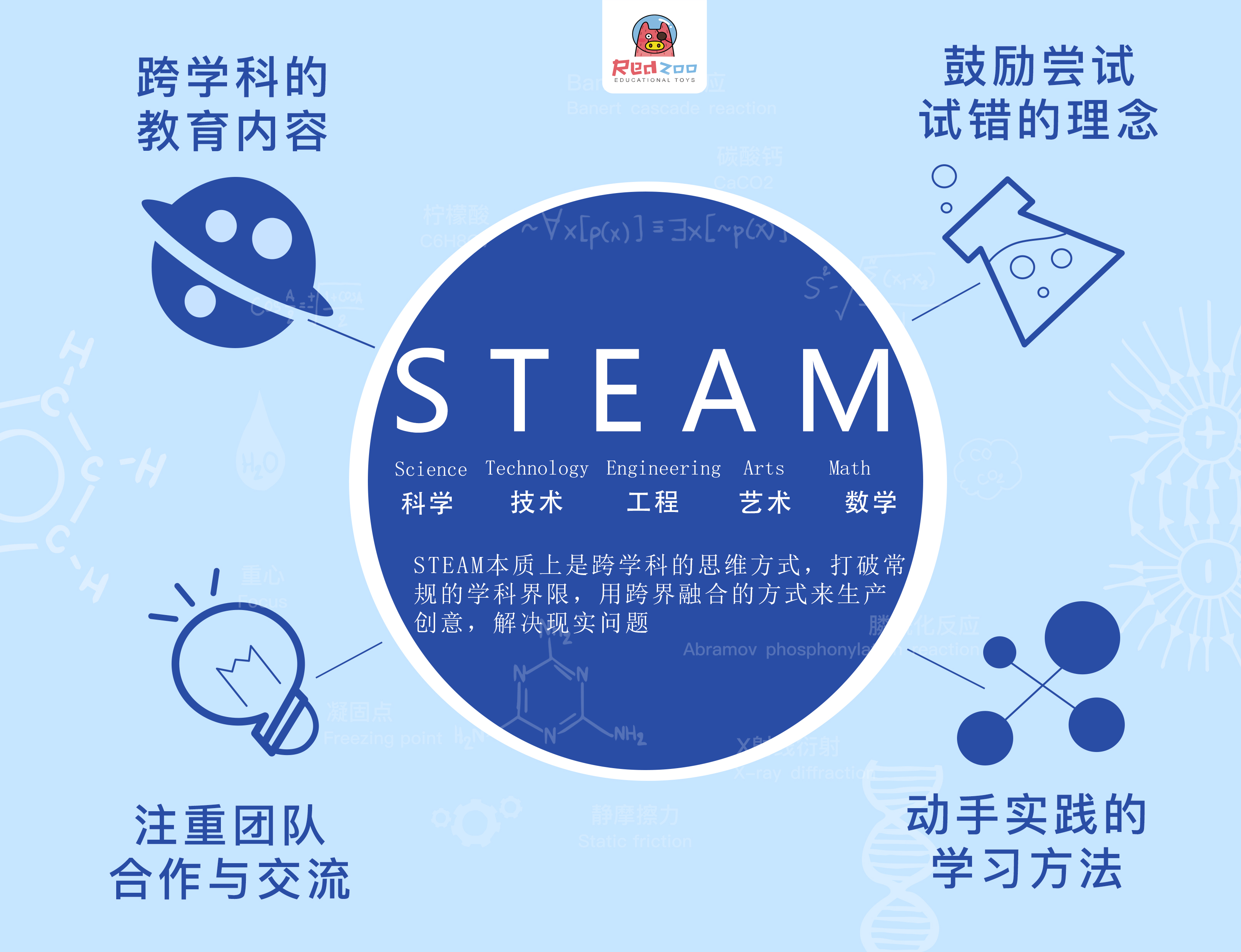 STEAM是起源于美國的教育理念,是融合了科學(xué)(Science)、技術(shù)(Technology)、工程(Engineering)、藝術(shù)(Arts)、數(shù)學(xué)(Mathematics)的綜合式教育,強(qiáng)調(diào)的是多學(xué)科,跨領(lǐng)域知識的學(xué)習(xí)和應(yīng)用,較比傳統(tǒng)教育理念來說,STEAM教育對于實(shí)踐能力要求更高。