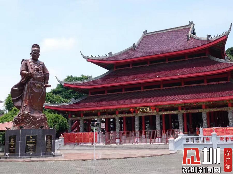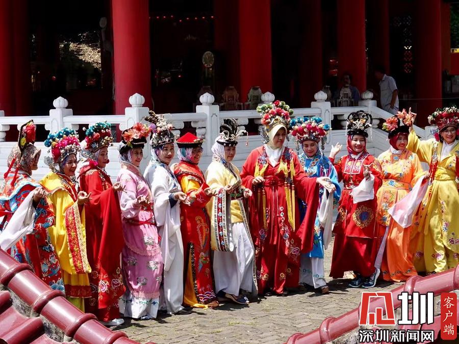 在鄭和廟,常有當(dāng)?shù)嘏阅滤沽肿庥弥袊?guó)傳統(tǒng)戲劇服裝在寺內(nèi)留影。李仁奇攝