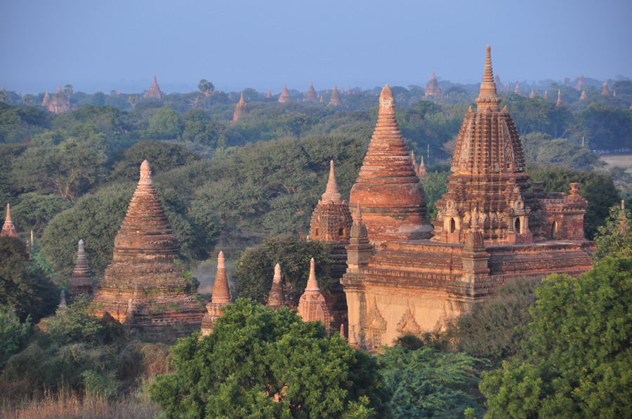 當(dāng)時(shí)不論貧富貴賤,家家戶戶都修建佛塔供奉佛祖釋加牟尼雕像。最興盛的時(shí)期,蒲甘擁有大小佛塔、廟宇一萬多座。李仁奇攝