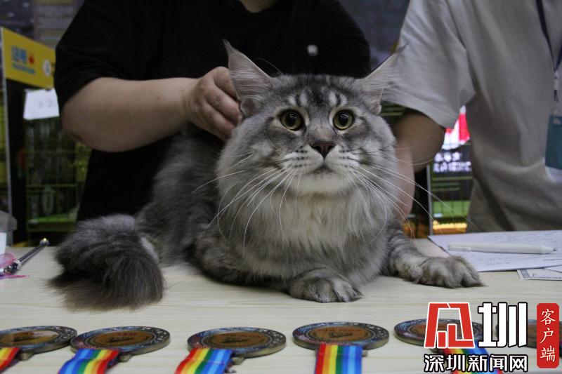 一只貓咪正在被裁判進(jìn)行評估。