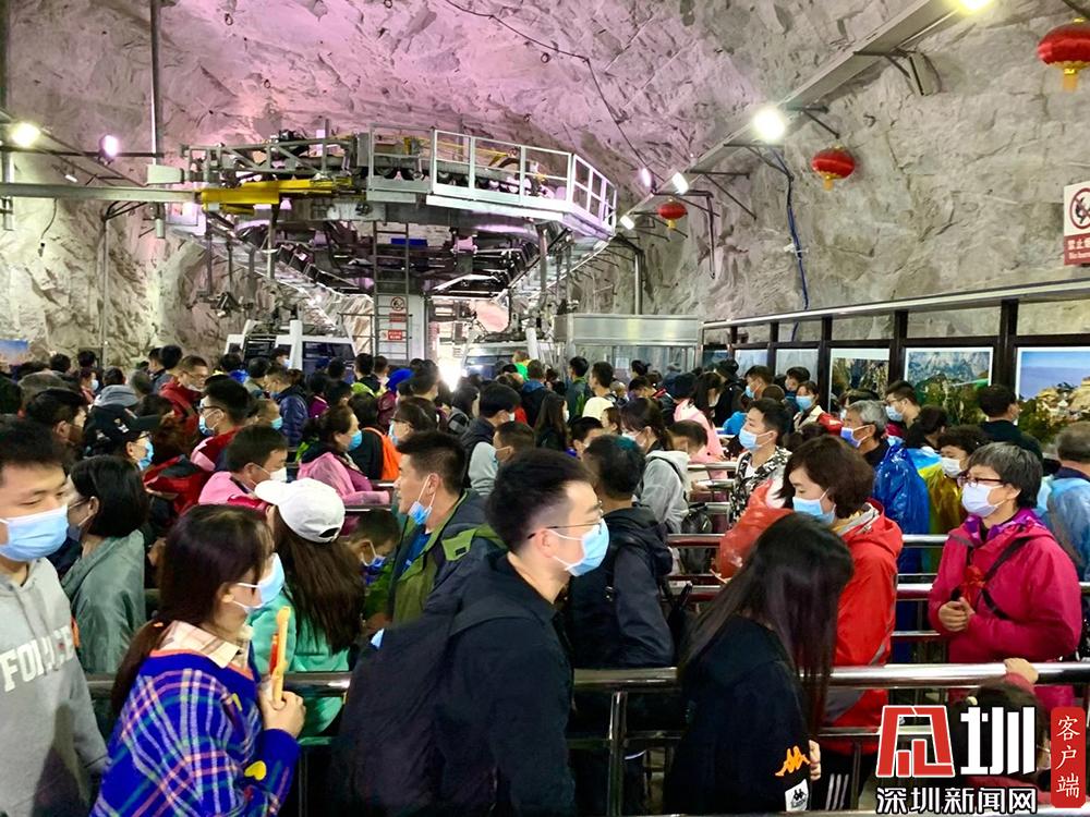 共有72個半懸空洞,道觀20余座,其中玉泉院、都龍廟、東道院、鎮(zhèn)岳宮被列為全國重點道教宮觀,有陳摶、郝大通、賀元希等著名的道教高人。排隊等待參觀的游客。李仁奇攝。