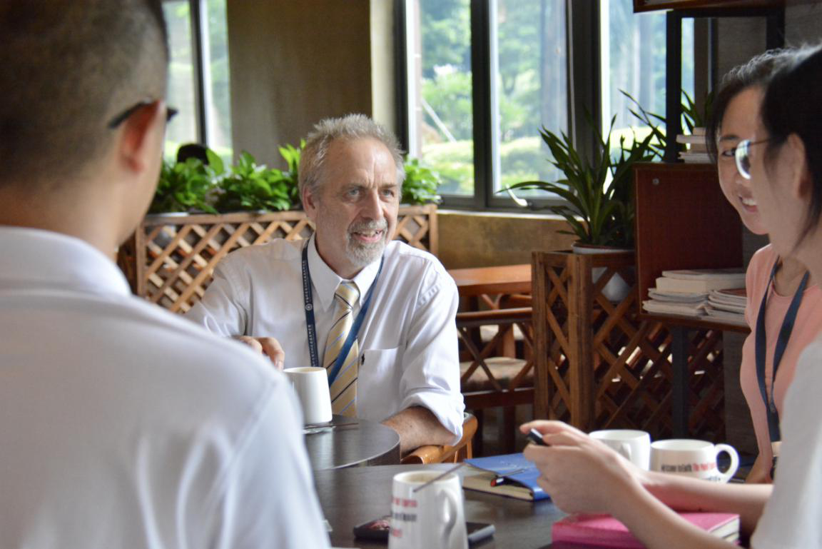 一身深藍色西裝,金色領(lǐng)帶,炯炯有神的目光以及幽默風(fēng)趣的性格,讓他在儒雅中顯得格外平易近人。從英國到北京再到深圳,John Roger Speakman每一次選擇都為了離自己的研究目標更進一步。