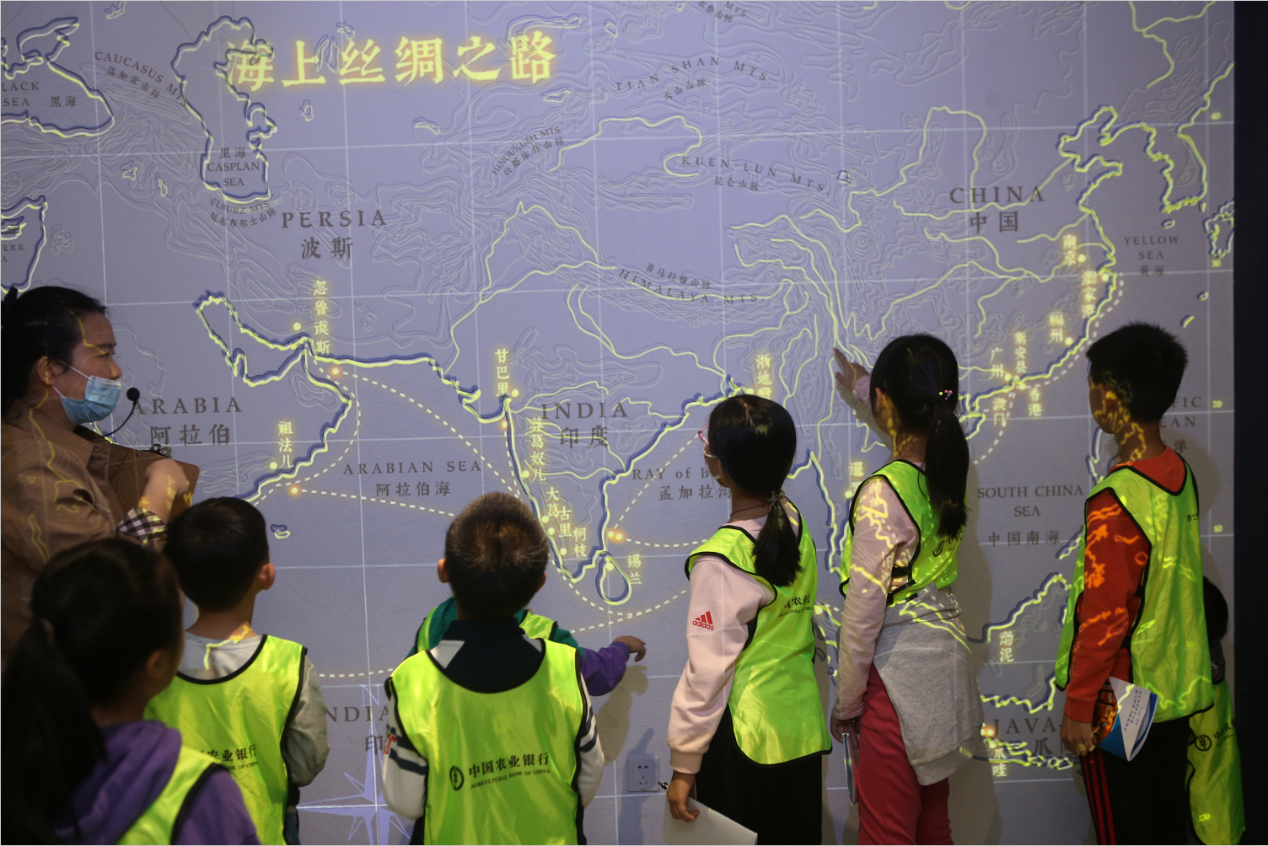 新安縣衙、東莞會館、報德祠、織金廣彩館、牌匾故事館、南頭古城博物館獻(xiàn)禮特區(qū)40周年展……小朋友們跟隨老師的步伐,認(rèn)真聆聽著古城歷史。南頭1820數(shù)字展廳的絹本國畫長卷《南頭繁會盛景圖》吸引著孩子們的注意,這幅別具特色的畫卷采用三維鏡頭呈現(xiàn)出一幅具有中國畫意境、專屬南頭的古代勝景。孩子們通過沉浸式體驗(yàn),穿越回清朝的南頭古城,感受著古時候南頭人民的生活?!霸瓉砟项^古城這么厲害,以前各國到廣州貿(mào)易的商船都要先停靠在這里,‘粵東首府、港澳源頭’指的都是南頭古城?!笔畾q的赫赫興奮的告訴記者。作為深圳、香港城市發(fā)展的共同源頭,南頭古城的發(fā)展史在很大程度上就是一部深圳城市的發(fā)展史。