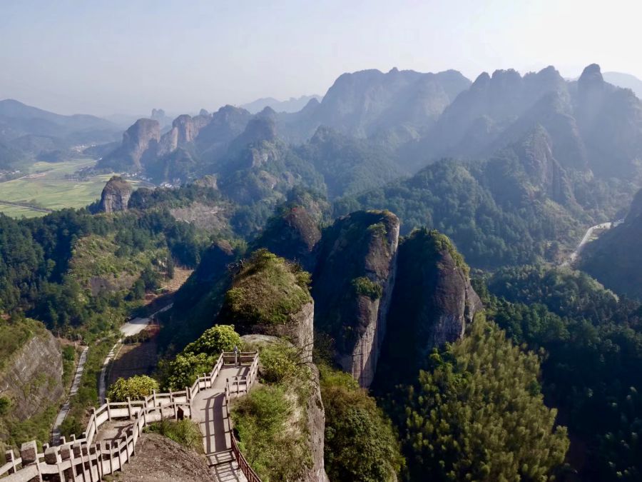 乘索道或步行登上八角寨觀景臺(tái)可以俯瞰崀山丹霞的全貌。李仁奇 攝