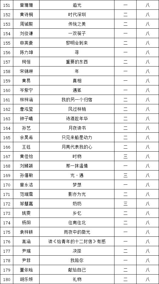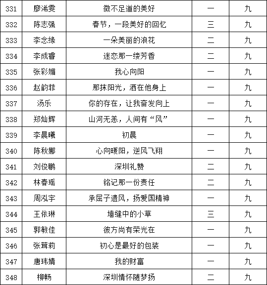 自2021年1月,活動征稿啟動以來,獲得了深圳市廣大中小學生、教師、文學愛好者的熱烈響應積極參與,吸引了深圳百余所學校的上萬人關(guān)注報名。現(xiàn)公布福永中學晉級復賽名單如下:
