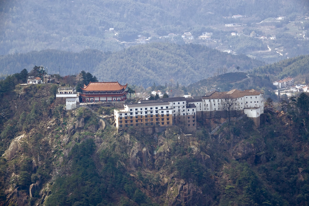 由于其隆起幅度自核心部位向周圍逐漸減小,外圍山地由硬度較花崗巖小的花崗閃長(zhǎng)巖和沉積巖組成,易被沖刷蝕低,故整個(gè)九華山體由眾多千姿百態(tài)、高低參差的中山、低山、丘陵和山間盆地等組成。李仁奇 攝