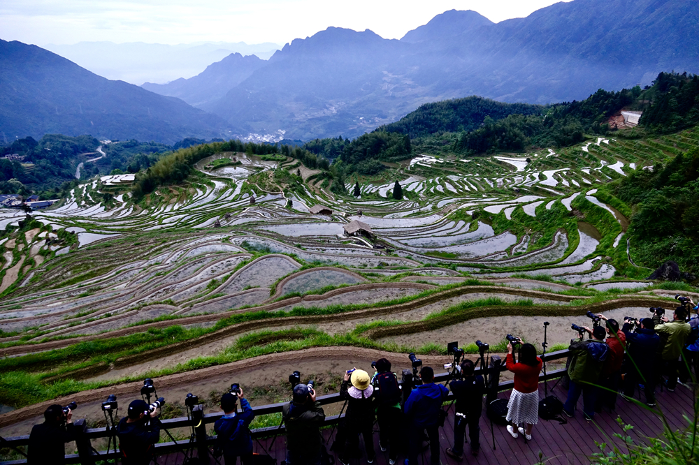 九曲云環(huán)是云和梯田最核心的景區(qū),很多游客在這等待日出。李仁奇 攝