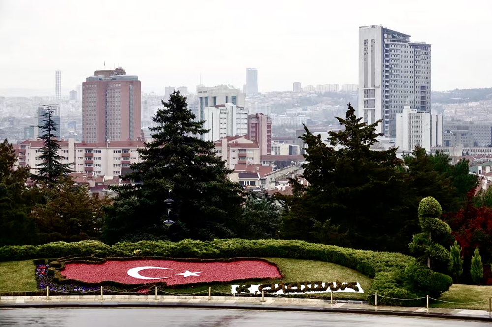 國父紀(jì)念館正門對面有個用獻(xiàn)花組成的土耳其國旗花壇。李仁奇 攝