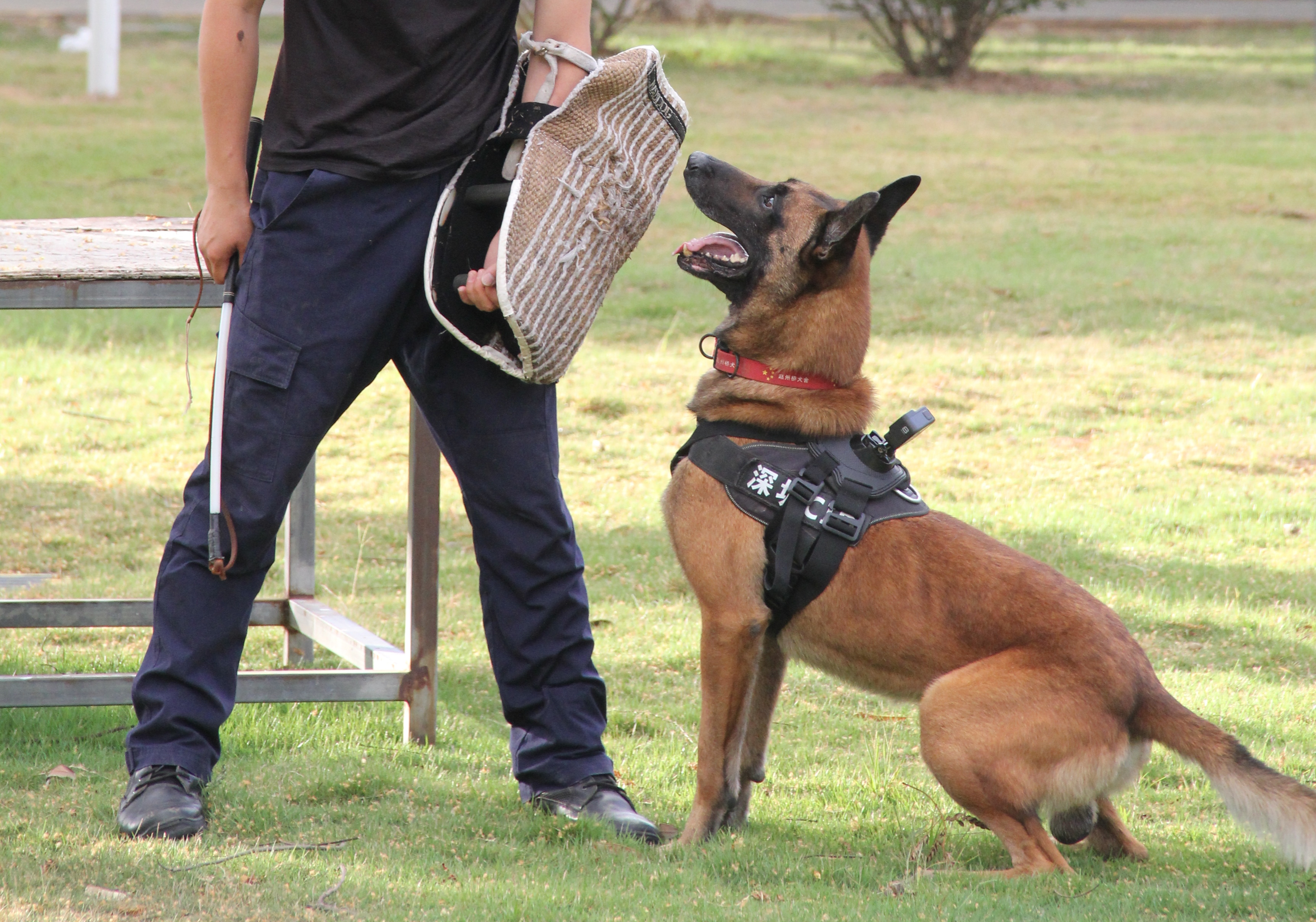 警犬的訓(xùn)練,更著重于利用狗的生理優(yōu)勢來配合人的工作,學(xué)習(xí)的多是“搜尋”“撲咬”。對于在休息和自由活動(dòng)的時(shí)間的行為,不會(huì)有太多的引導(dǎo)。