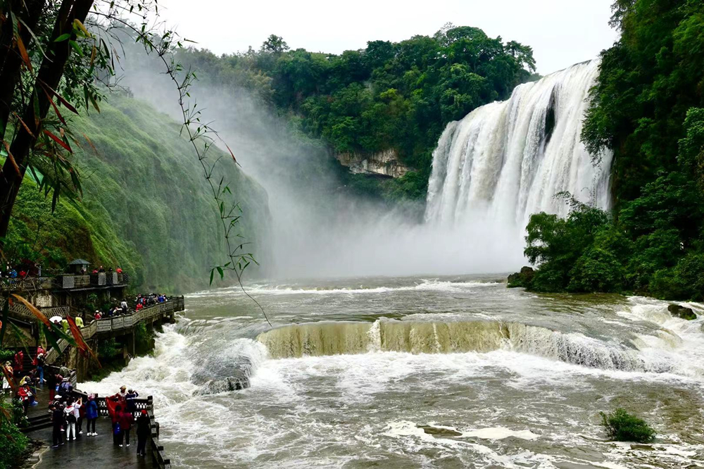 黃果樹瀑布的游客數(shù)以萬計,但是能夠在豐水期觀賞到特別壯觀景象的游客卻是少數(shù)。李仁奇 攝