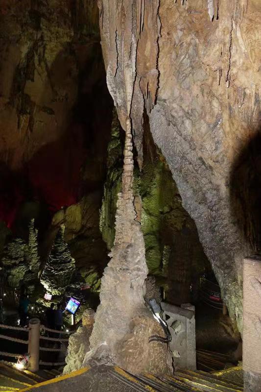 全洞容積達(dá)500萬(wàn)立方米,有上、中、下三層,洞中遍布石筍、石柱、石芽、石旗等四十多種洞穴堆積物,形成千姿百態(tài)的巖溶景觀(guān)。李仁奇 攝