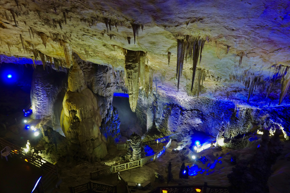 長(zhǎng)達(dá)6公里的游覽線(xiàn)路沿途,有十幾個(gè)空間壯闊的“大廳”,奇形怪狀、體量巨大的鐘乳石令人目不暇接。李仁奇 攝