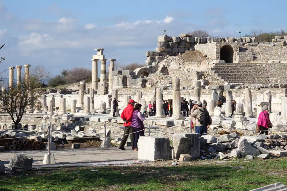 立柱背后是市政廳遺址。經(jīng)過幾百年的地貌變遷,以弗所的入??跐u漸被淤泥填塞,它賴以生存的海洋貿(mào)易遂告終結(jié),加上地中海沿岸頻發(fā)的地震,以弗所難逃被遺棄的噩運(yùn),這座新約《圣經(jīng)》中出現(xiàn)過的城市,最終淪為一片大理石廢墟。李仁奇 攝