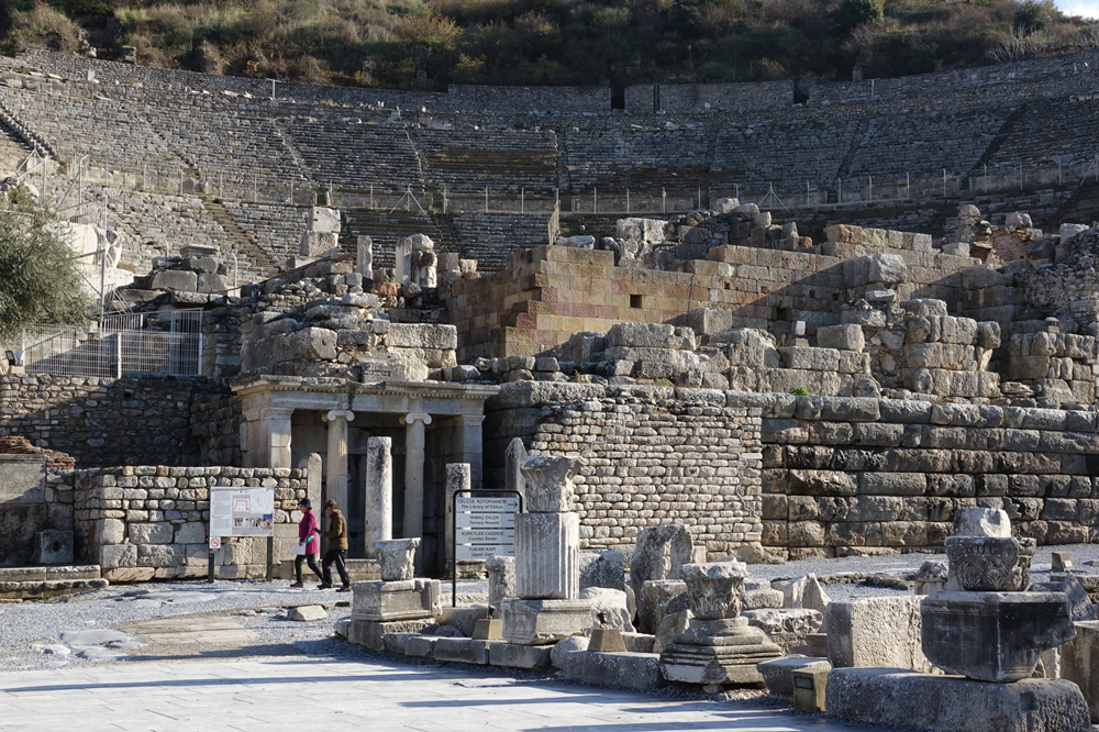 大劇場始建于公元前三世紀的希臘時代,羅馬時期進行擴建和完善,是座可容納25000名觀眾的半圓形建筑,是上演各種劇目以及市民參加公民會議的場所,還是角斗士與猛獸對決的場地。李仁奇 攝