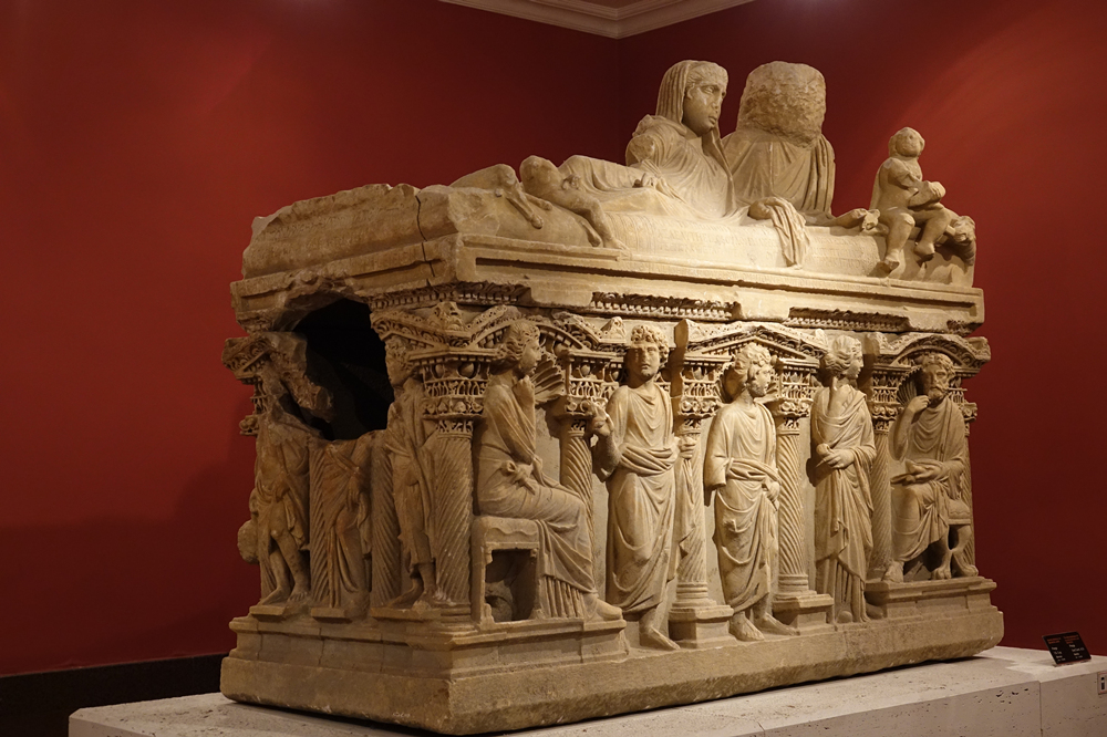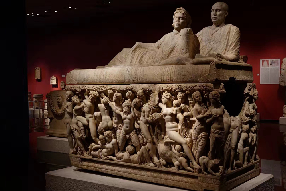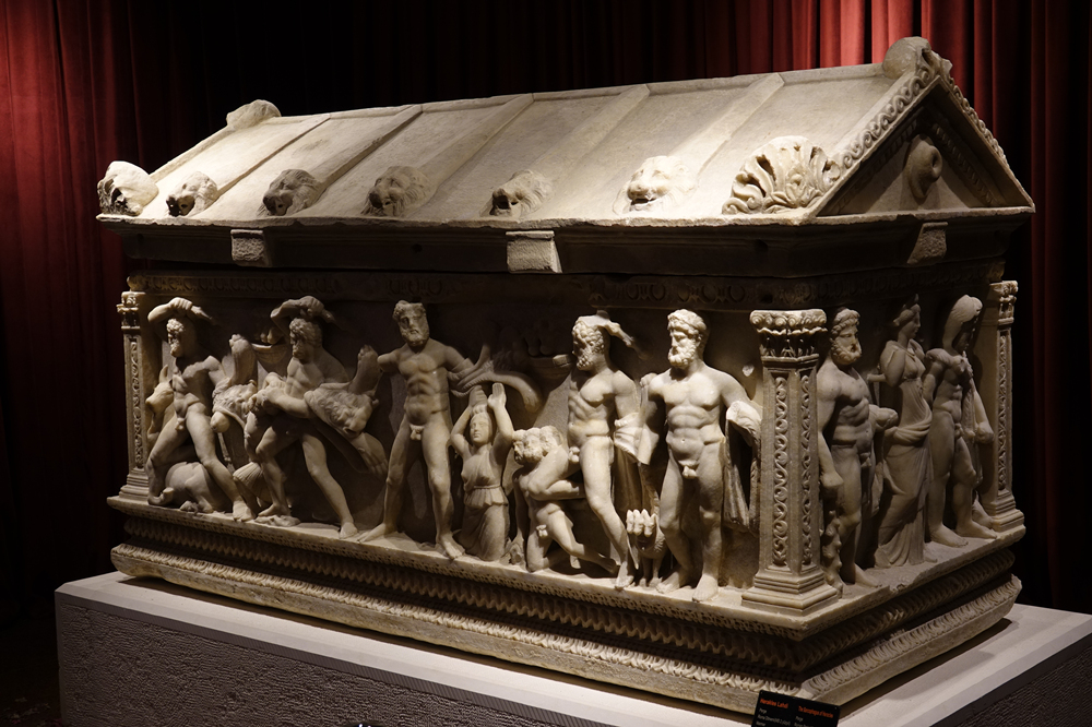 赫拉克勒斯石棺,它的側立面描繪赫拉克勒斯斬殺九頭蛇、與獅子搏斗、偷盜金蘋果等12項苦力后升為神的傳奇故事,浮雕保存完整、栩栩如生,展現(xiàn)了古羅馬精湛的雕塑工藝。李仁奇 攝