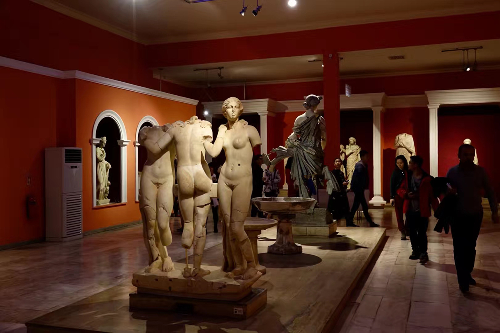 大量公元2—3世紀的人體雕塑令人目不暇接,這個時期也是該地區(qū)歷史發(fā)展中最為繁盛的階段。館內陳列著眾多古希臘古羅馬眾神的雕像,號稱“萬神殿”。這些雕像是從公元8世紀的古墓里面發(fā)掘出來的,包括眾神之神宙斯、天后赫拉、智慧女神雅典娜、愛情與美麗女神阿芙羅狄忒、太陽神阿波羅、大力神赫拉克勒斯等。李仁奇 攝