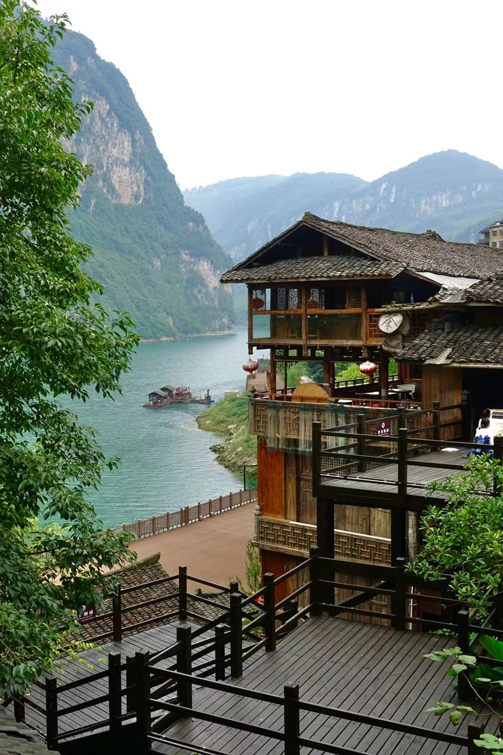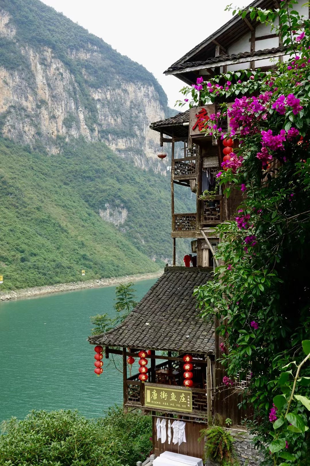 吊腳樓群臨江而立,由木材支撐穿斗而成的梁架結(jié)構(gòu),樓下堆貨或開鋪子,樓上住人,四面鋪走廊,是典型的土樓。李仁奇 攝