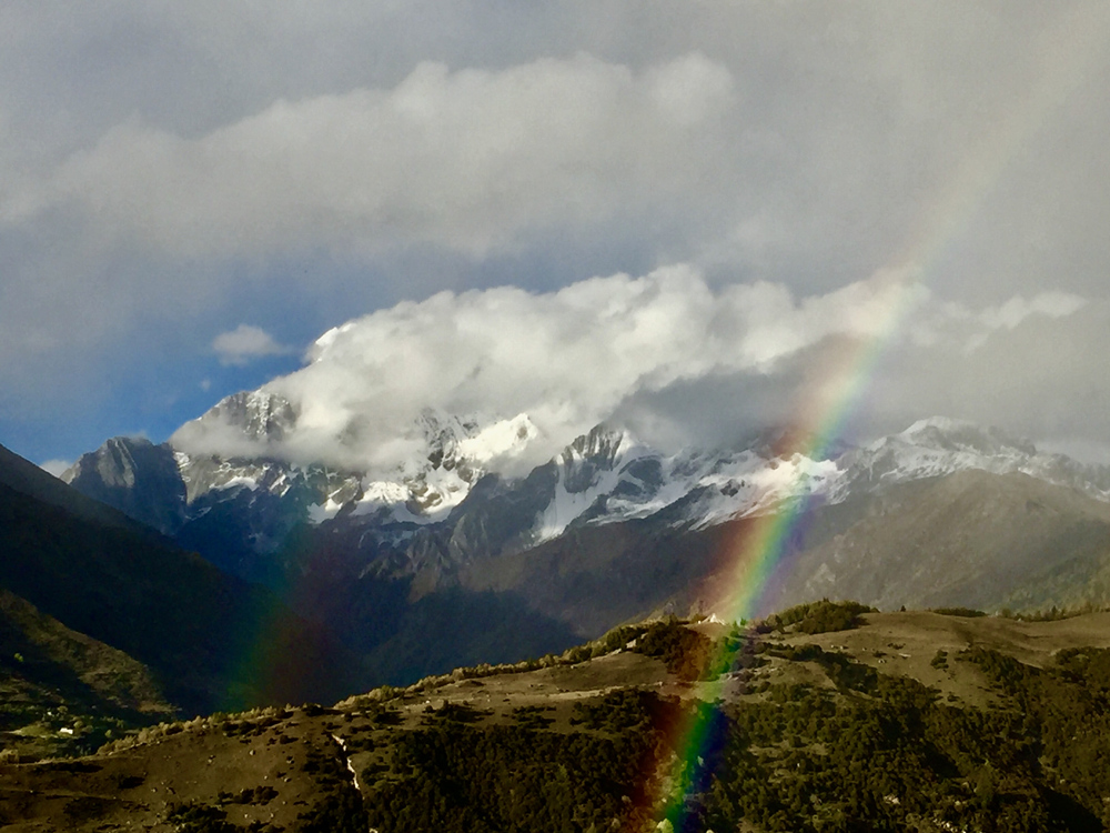 如果天氣晴好,在四姑娘山鎮(zhèn)旁山坡上的觀景臺(tái)可以眺望到同框的四座雪峰。李仁奇 攝